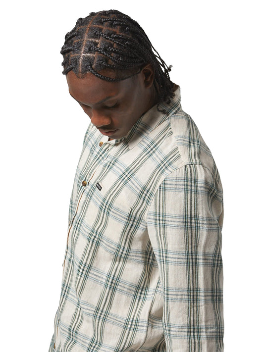 Charter Linen Blend Long Sleeve - Off White & Ivy Plaid