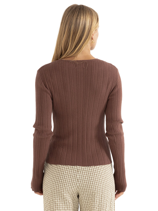 Essential Long Sleeve Knit Top - Chocolate