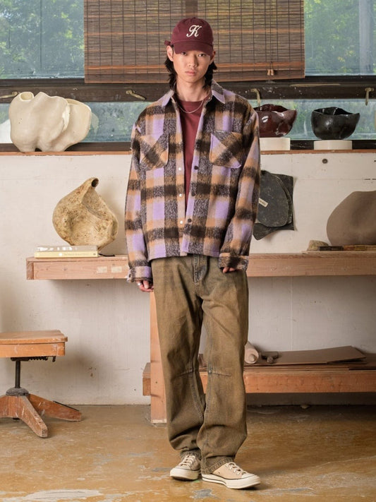 Heavyweight Plaid Shacket - Light Blue & Brown