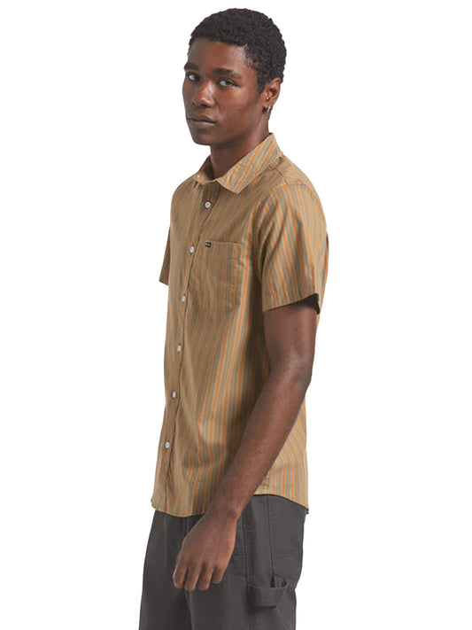 Charter Stripe Short Sleeve Shirt - Caramel & Night Sage