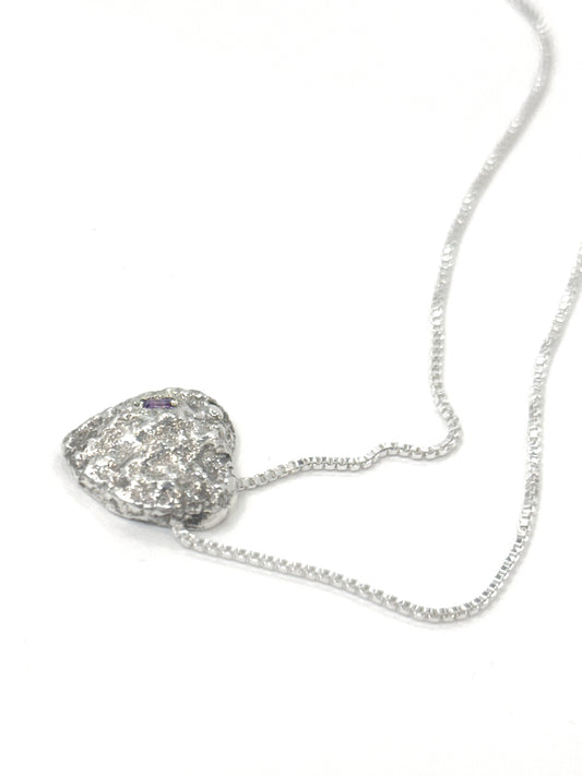 Sterling Silver Molten Heart Pendant Necklace with Pink Sapphire
