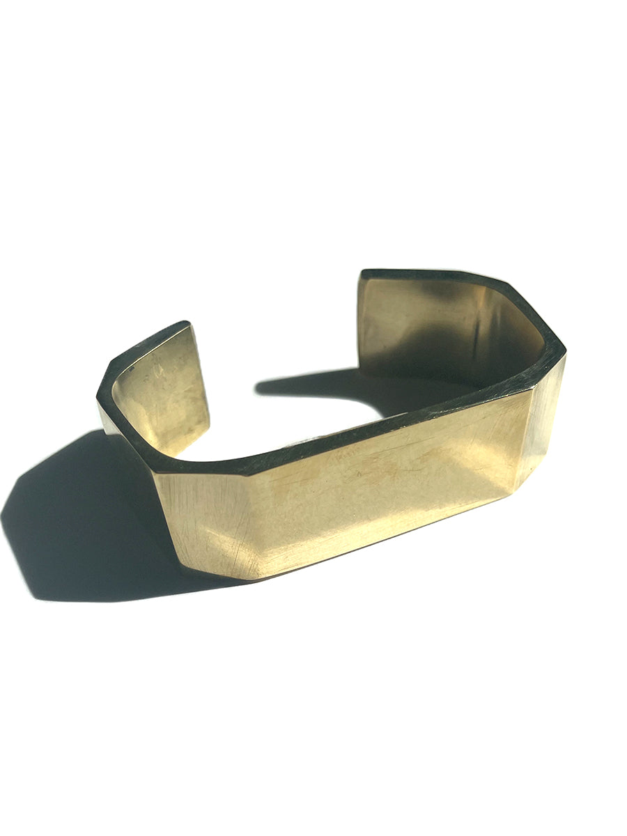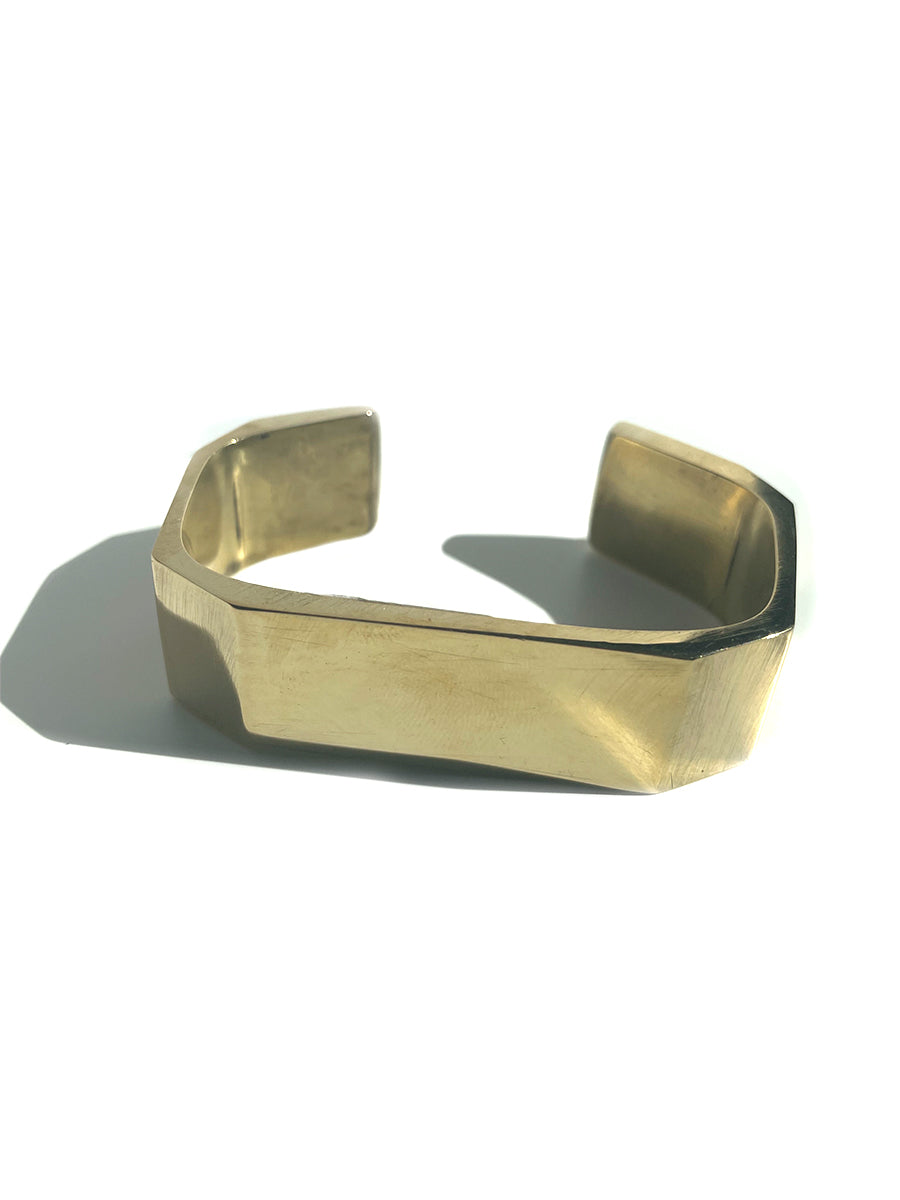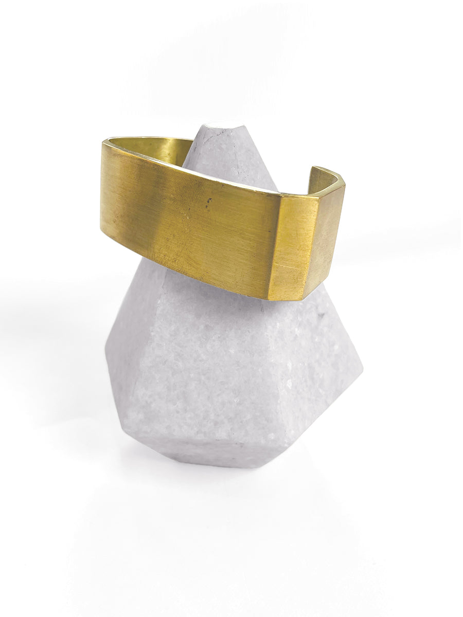 Angled wide chunky brushed solid brass cuff