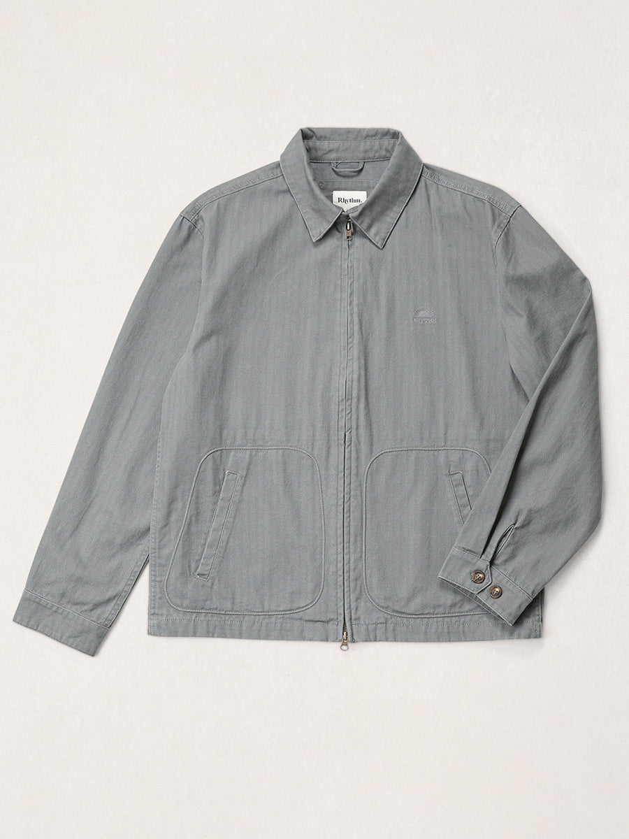 Workwear-inspired zip-up herringbone jacket.