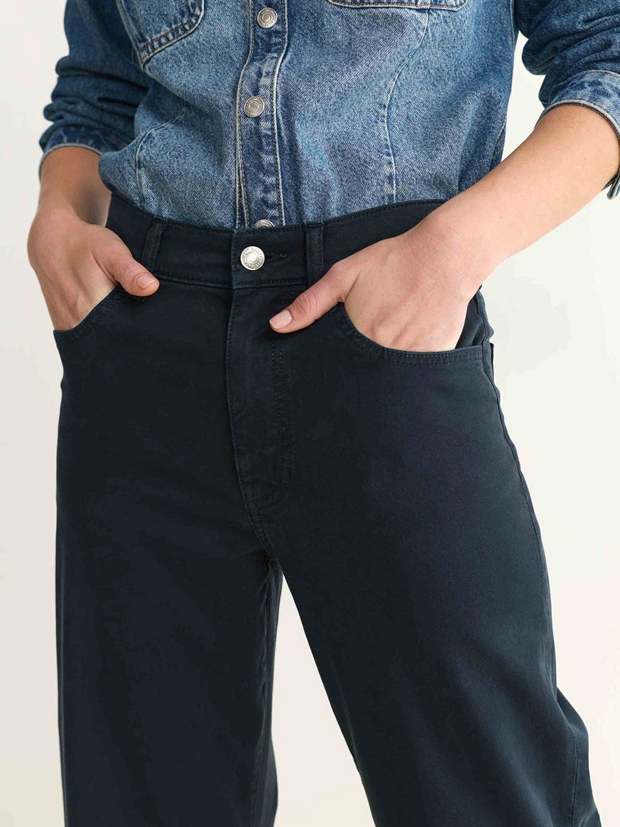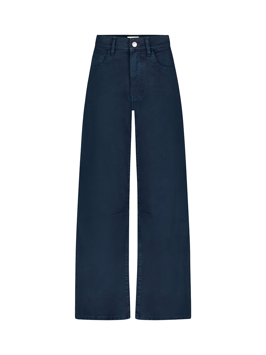 Wide leg barrel jeans in a deep indigo cotton-stretch twill.