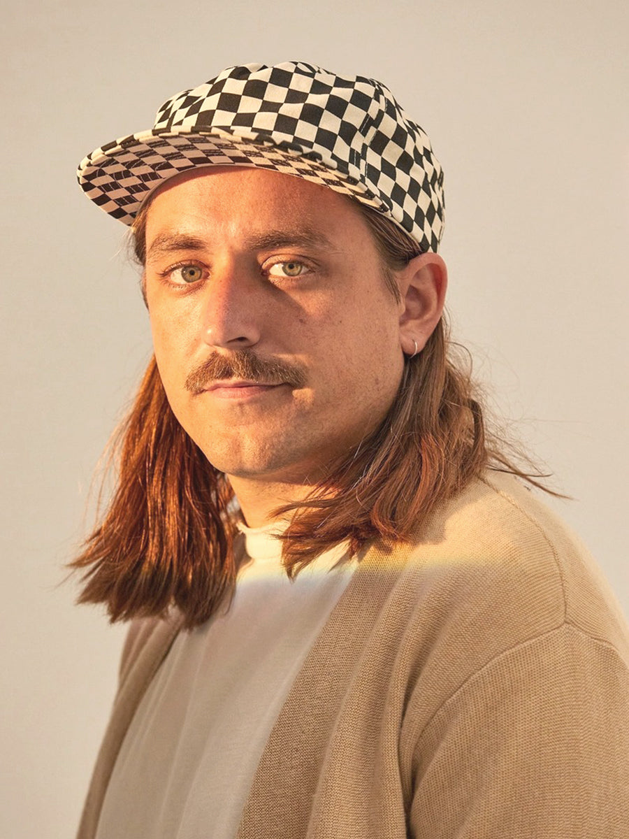 Laid back 5-panel unstructured brushed cotton twill hat in a blue & white checkerboard pattern.