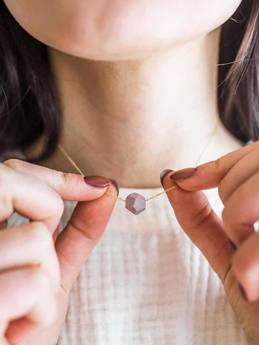 Elegant porcelain faceted spherical pendant necklace with an 16" chain.