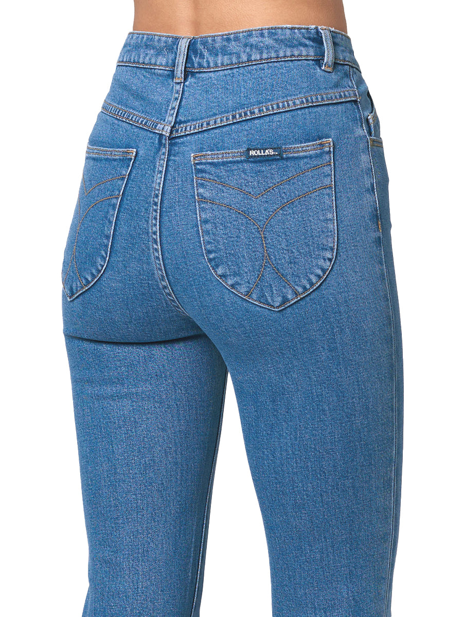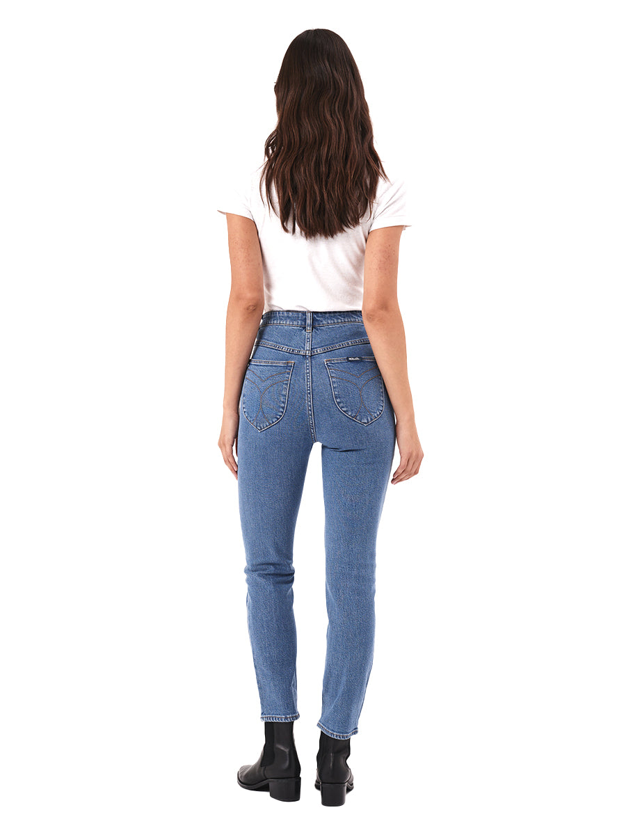 High waist, slim fit, tapered cigarette-leg jeans in a stretchy medium-indigo wash