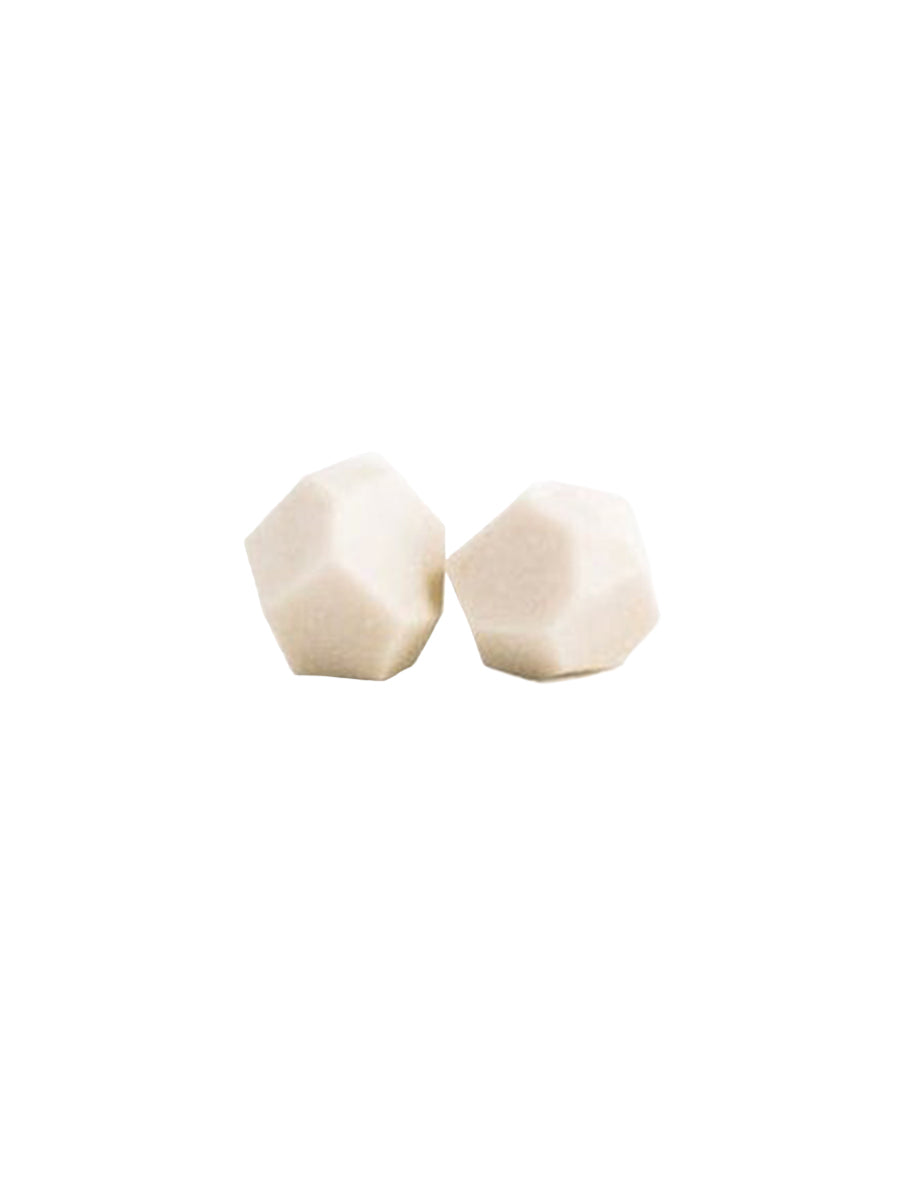 Hand-carved faceted spherical studs made from kiln-fired raw porcelain with hypoallergenic titanium posts.