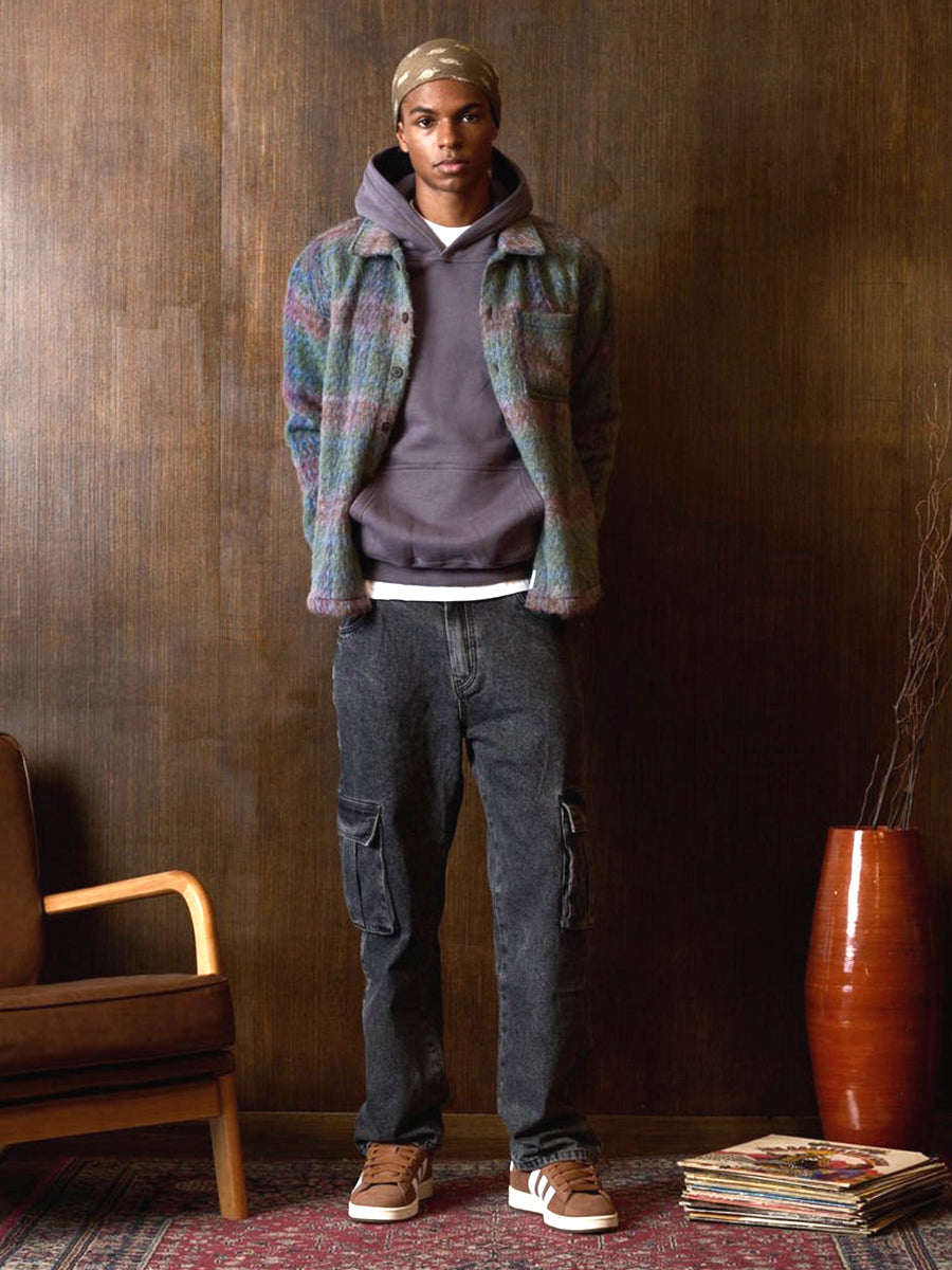 Vintage-inspired fluffy overshirt in an all-over plaid pattern