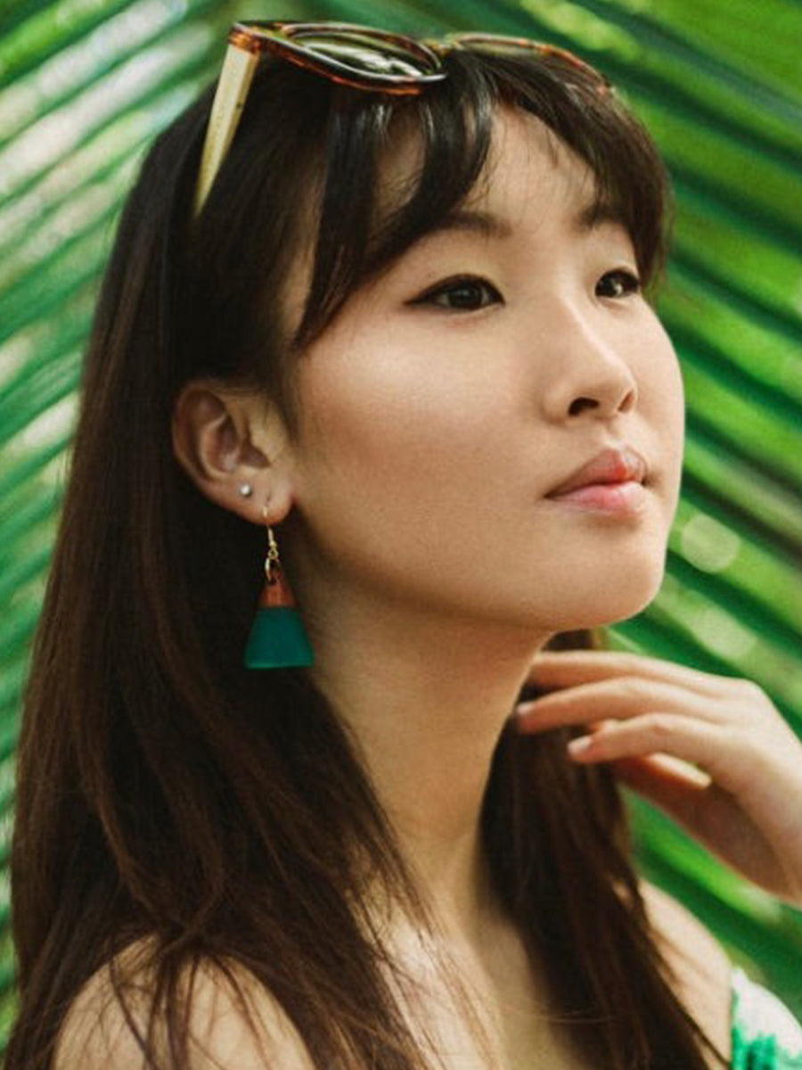 Jade Domed Drop Earrings - Teal