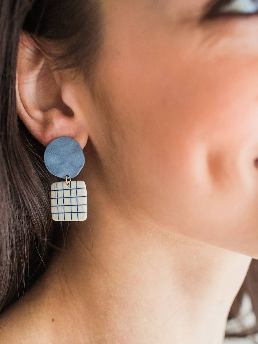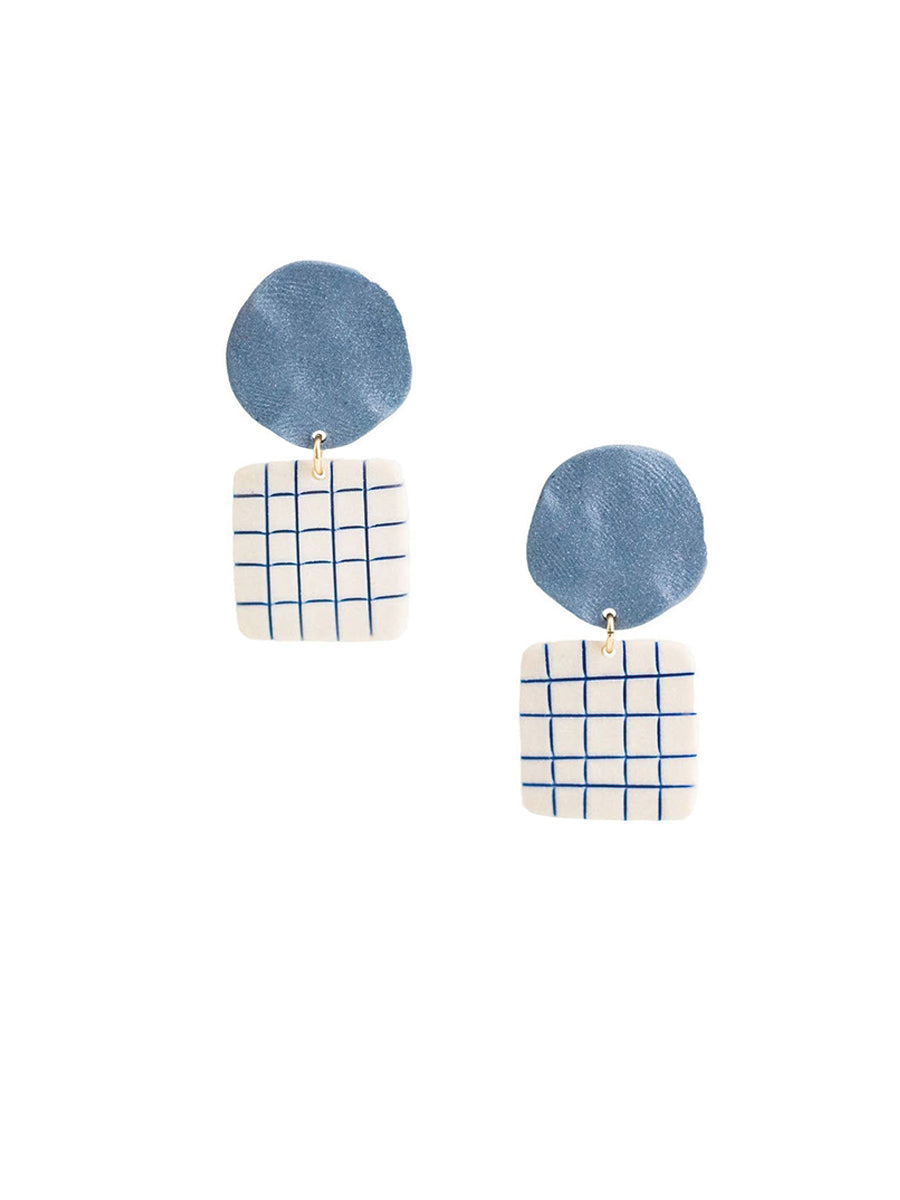Fun two-piece mix & match drop studs that recall porch hangouts, made from kiln-fired raw porcelain with hypoallergenic titanium posts.