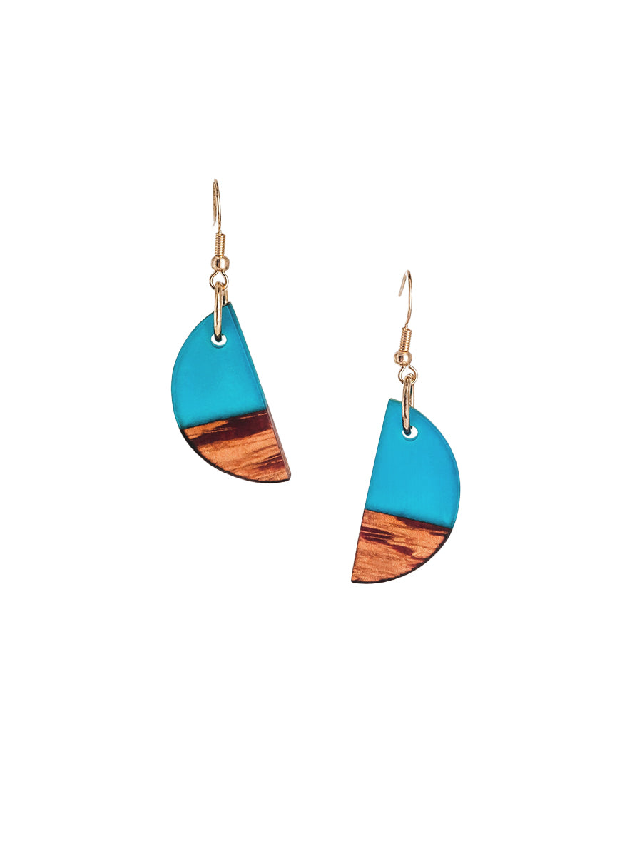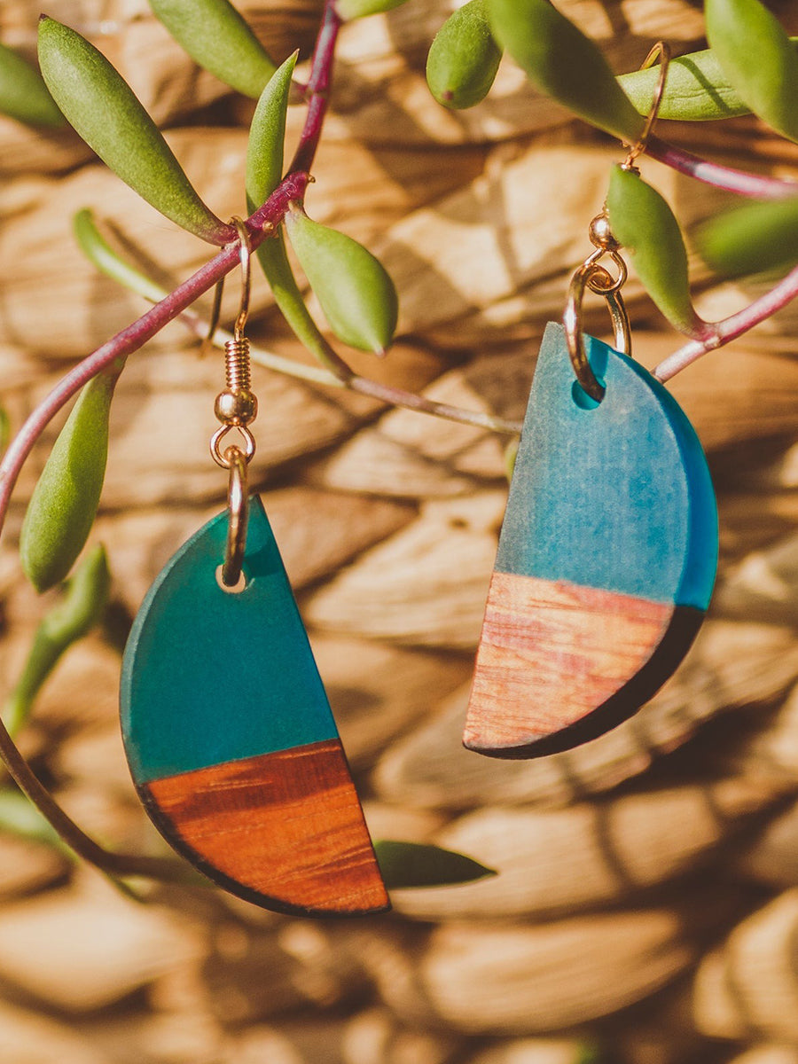 Lightweight & fun half-circle dangle earrings made from a wood & resin mix