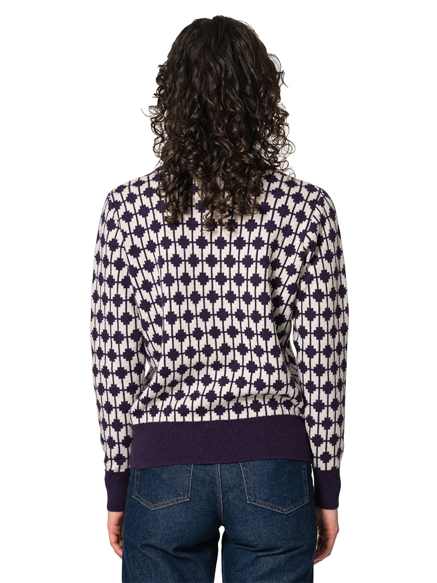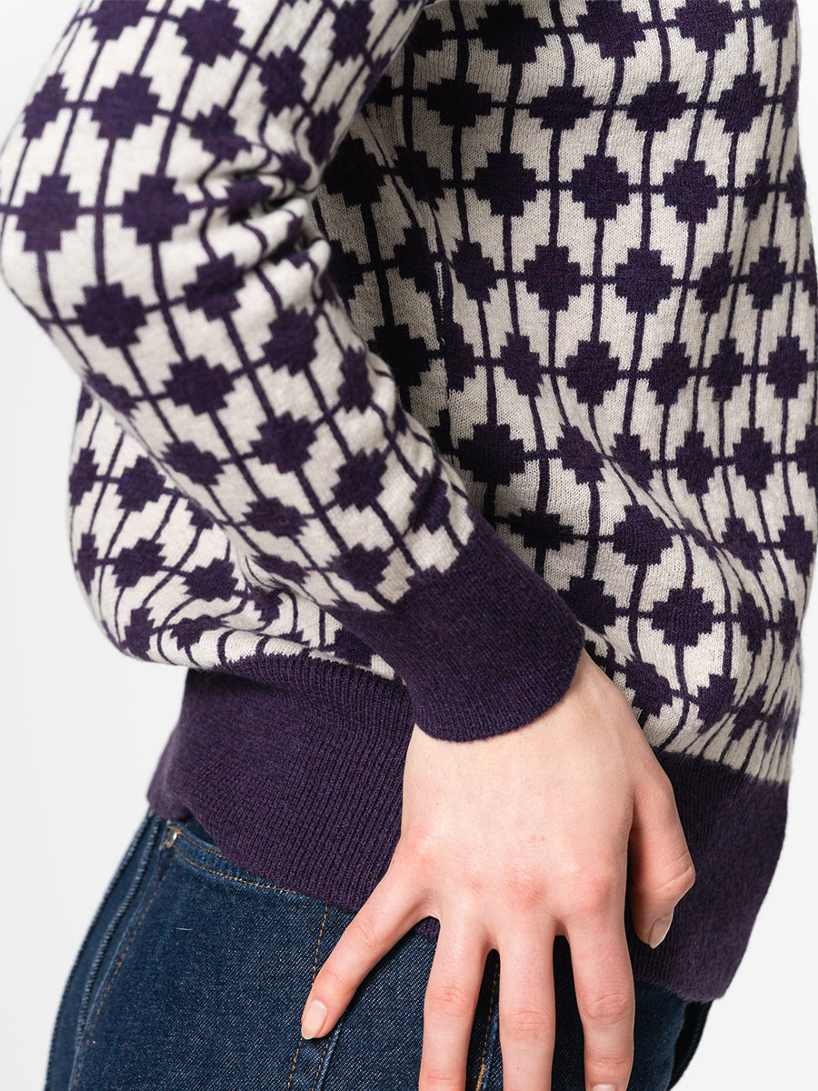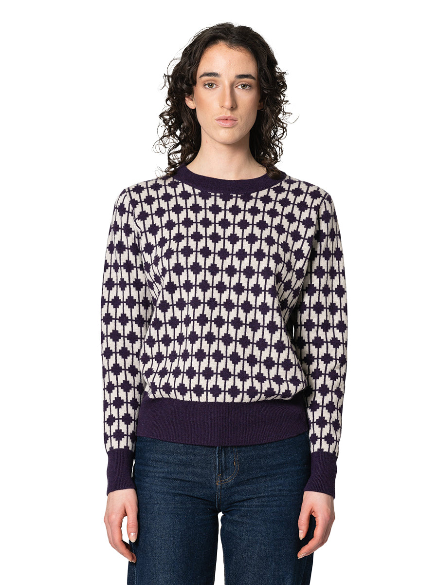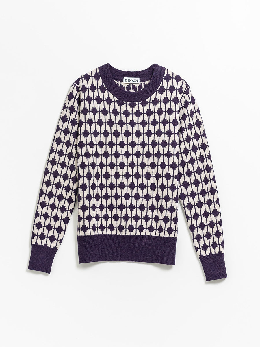 Soft merino wool crewneck sweater knit in a pattern inspired by Dhaka, a traditional fabric of the Limbu people of Nepal