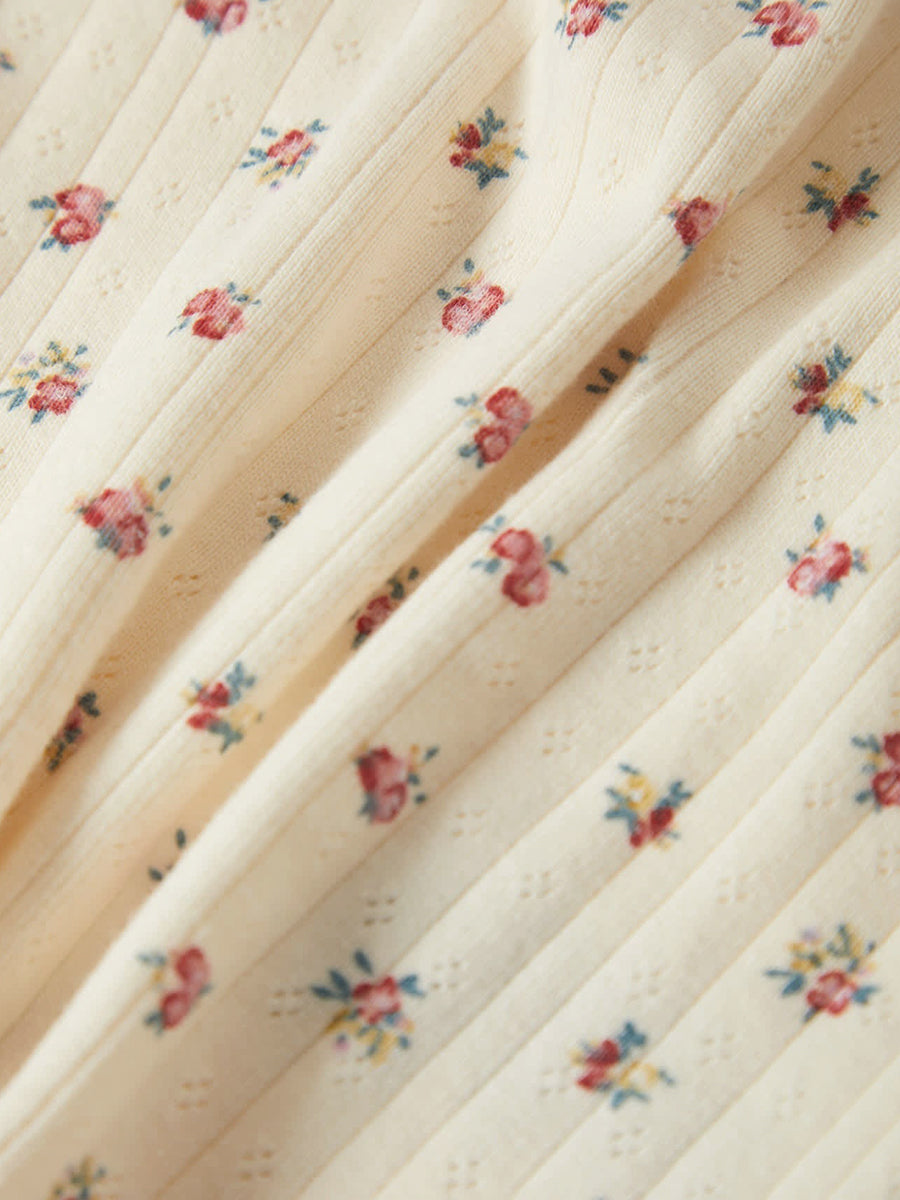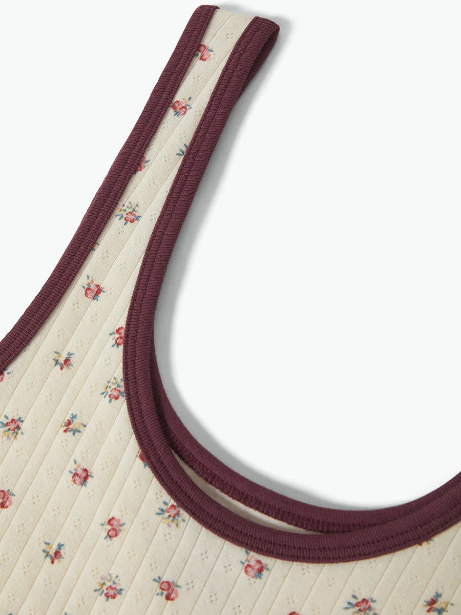 Slim-fit scoop-neck tank with vintage-inspired contrast piping in a floral pointelle.