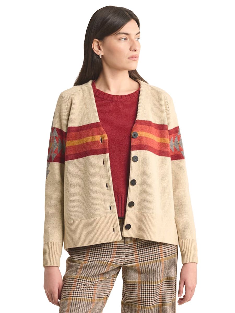 Cozy oversized & easy button-up cardigan with a knit Pendleton motif