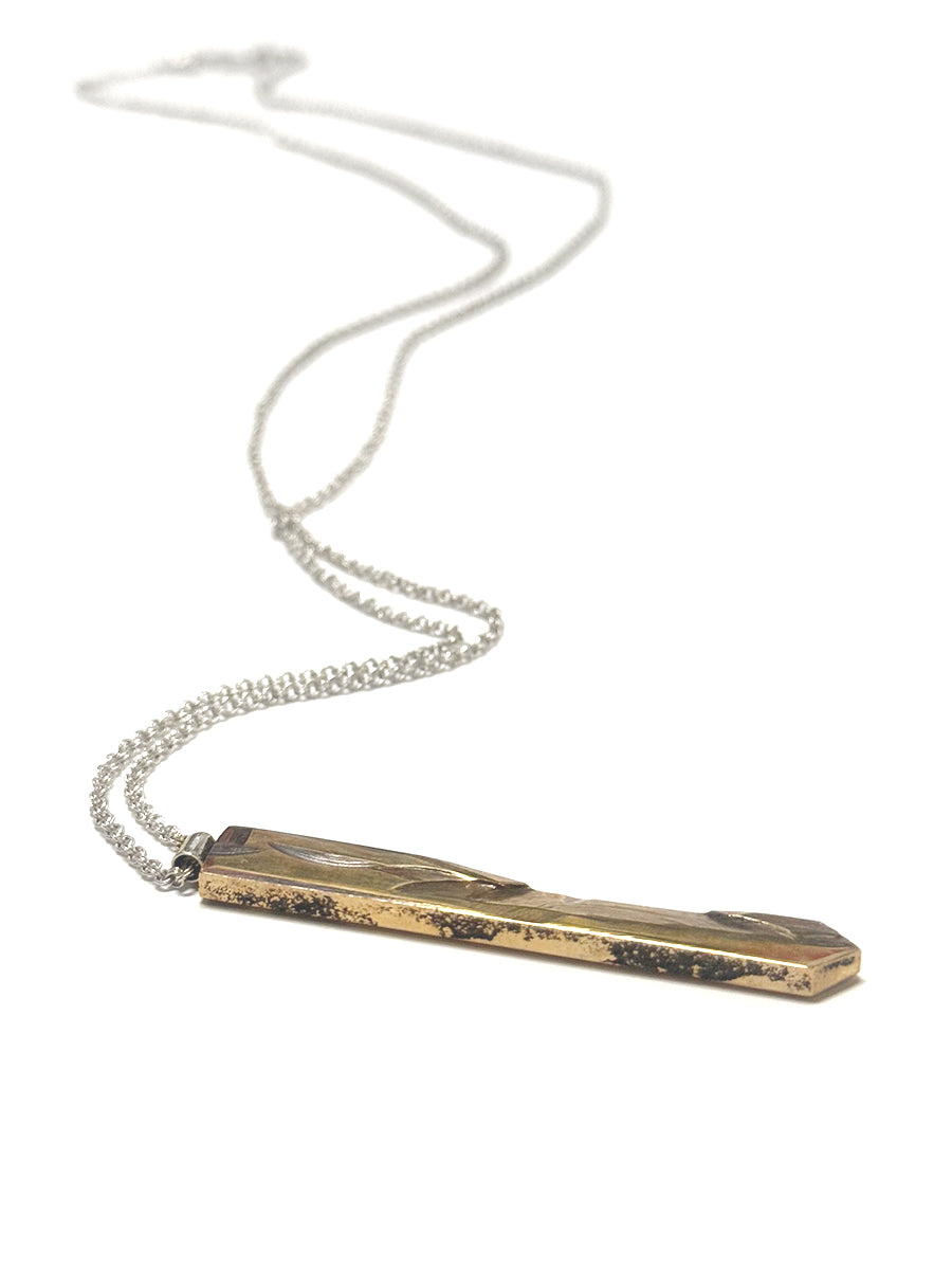 Sculpture Series Bronze Pointed Oblong Pendant Necklace