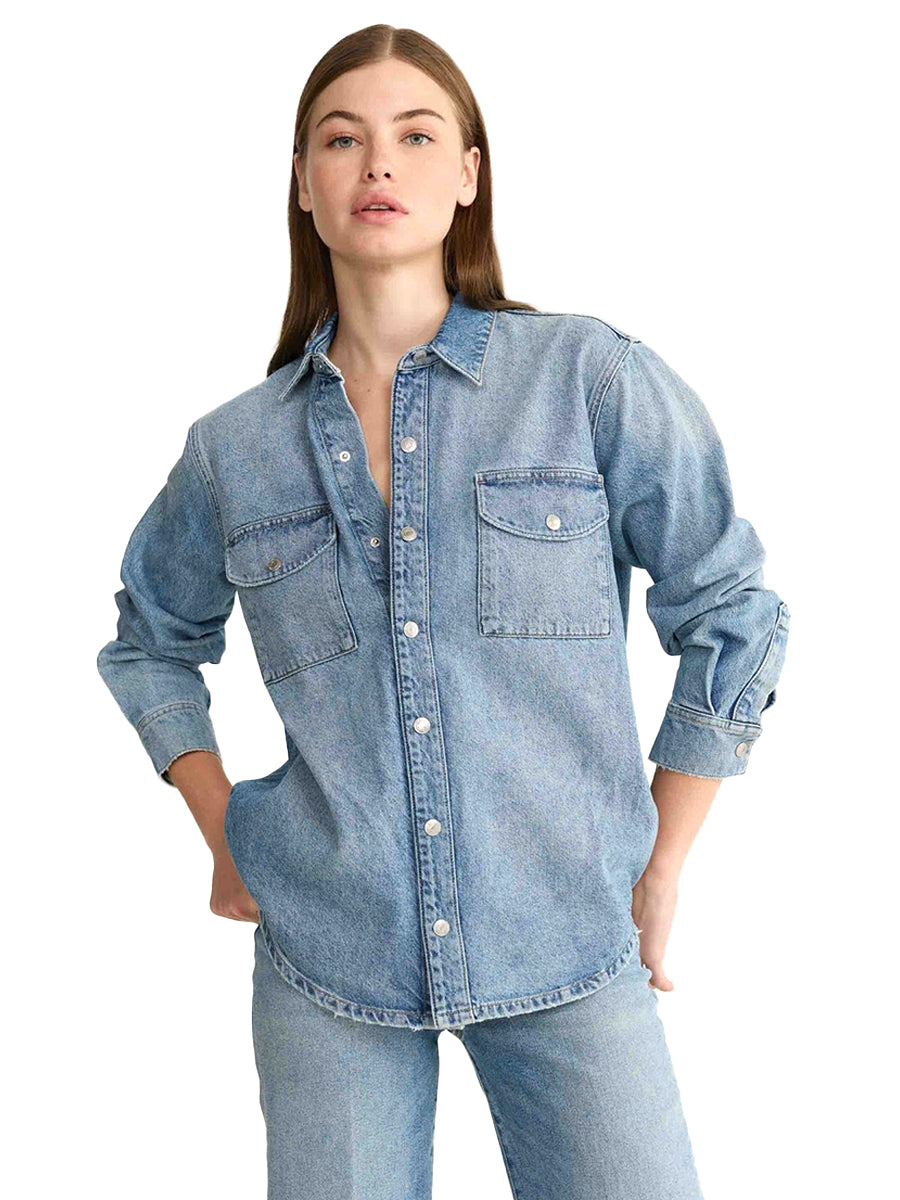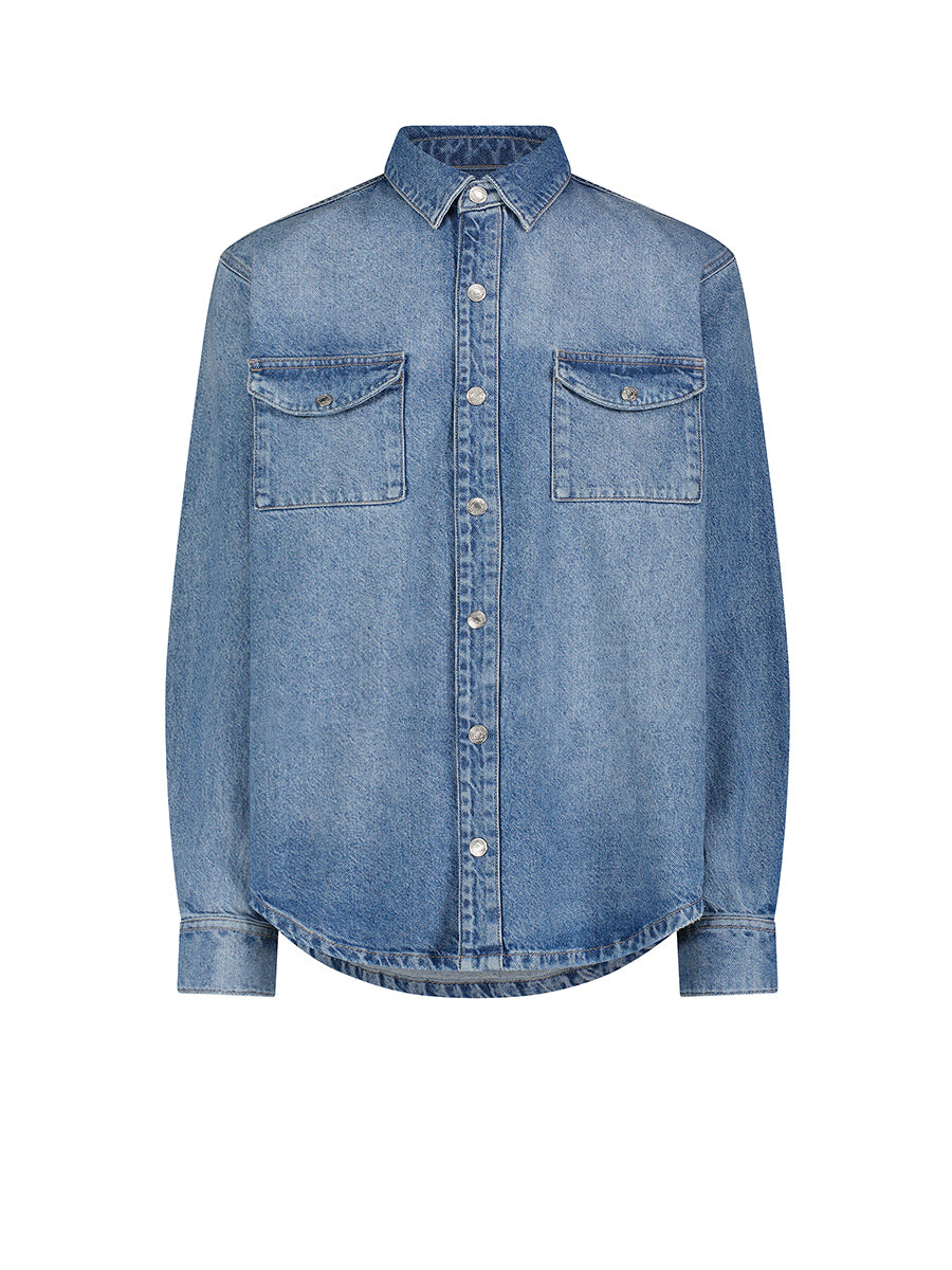 Classic denim over-shirt in a vintage mid-blue wash with slight wear