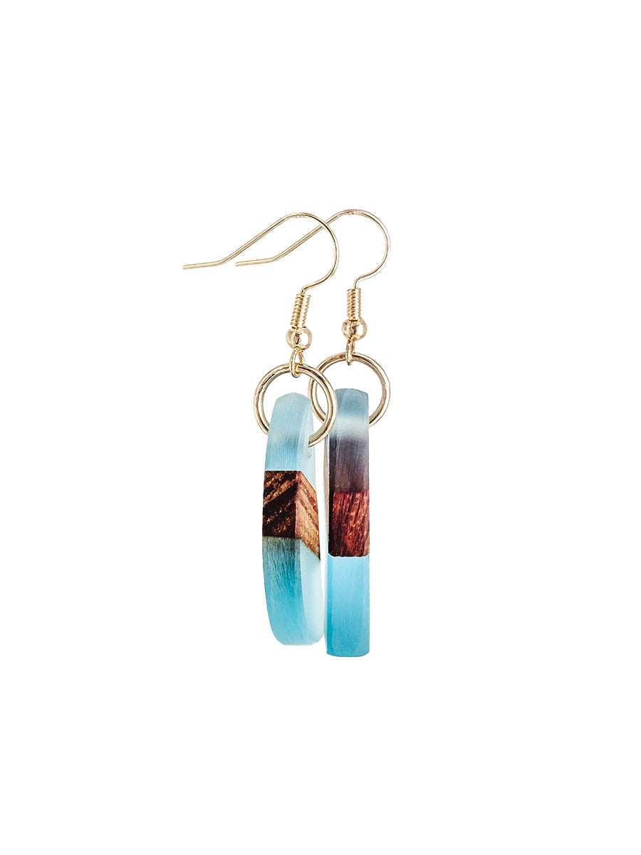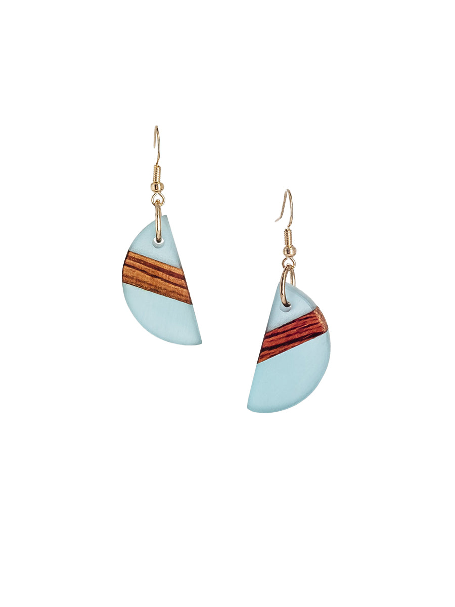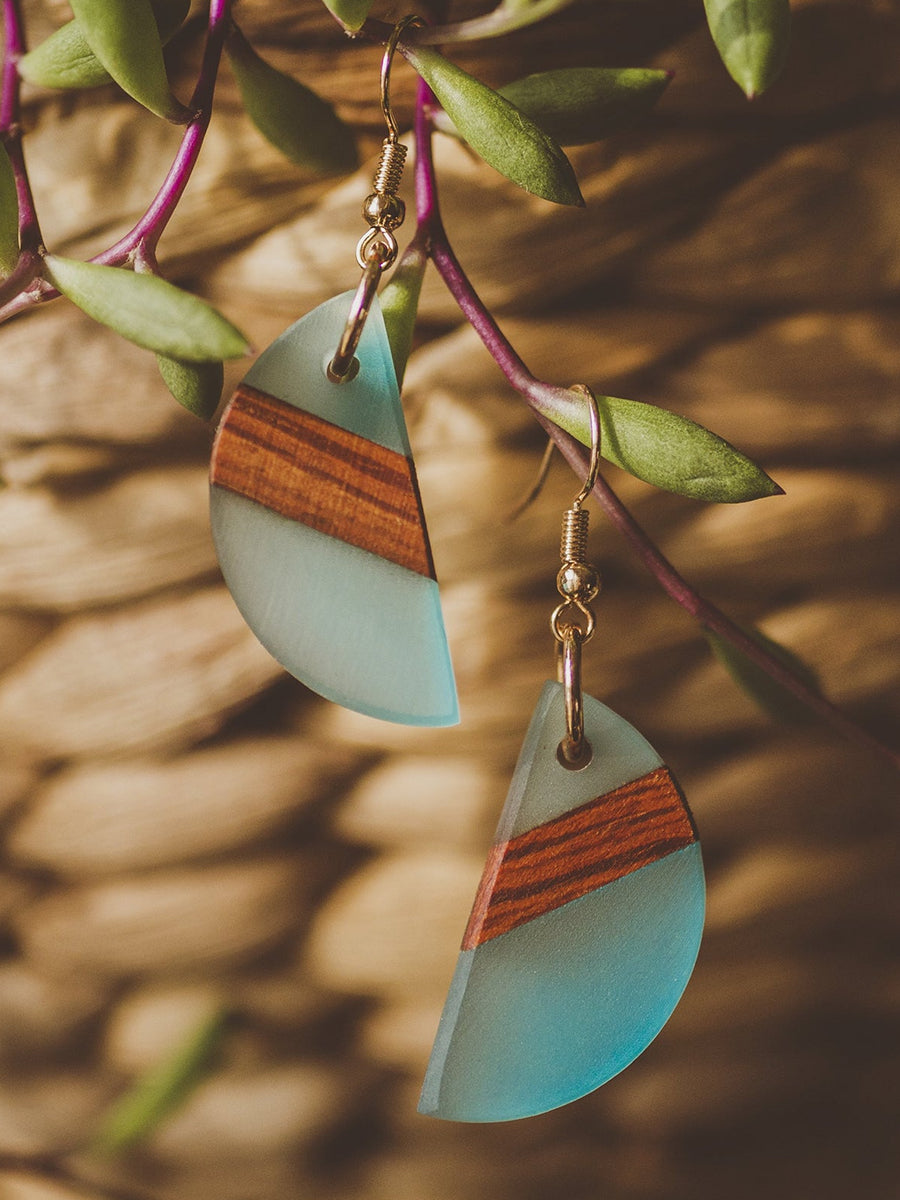 Lightweight & fun half-circle dangle earrings made from a wood & resin mix