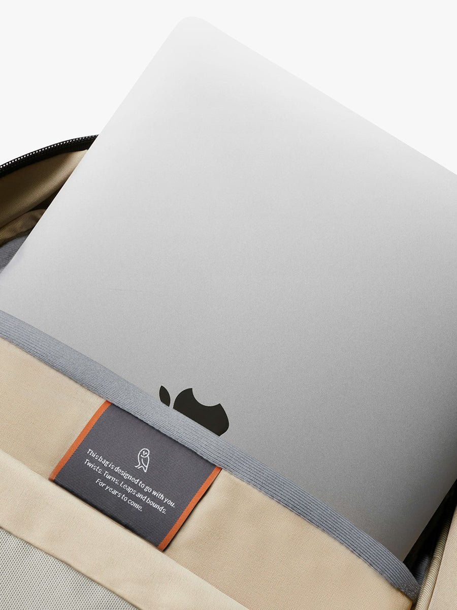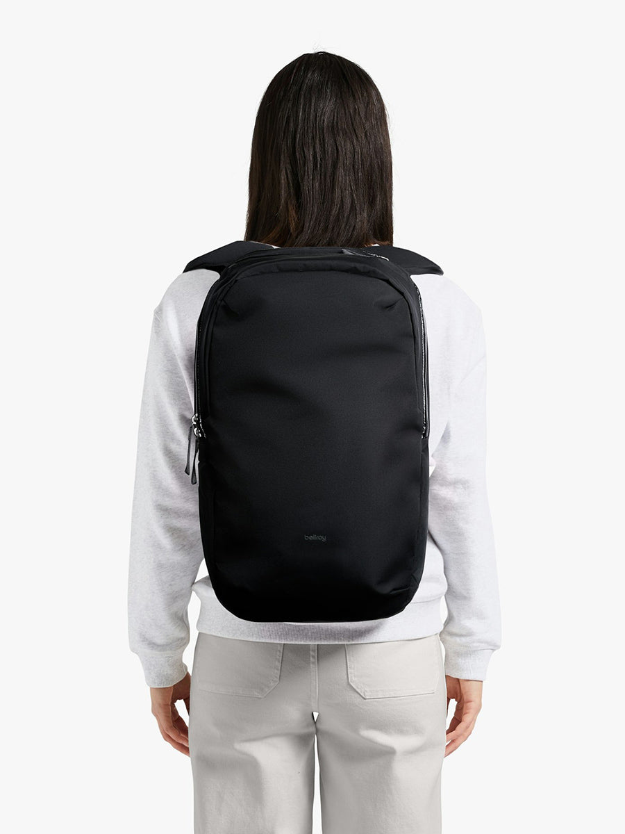 Sleek & minimalist water-resistant backpack that fits up to a 16" laptop, with a drop-down front panel opening.