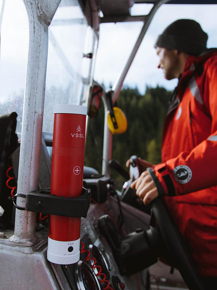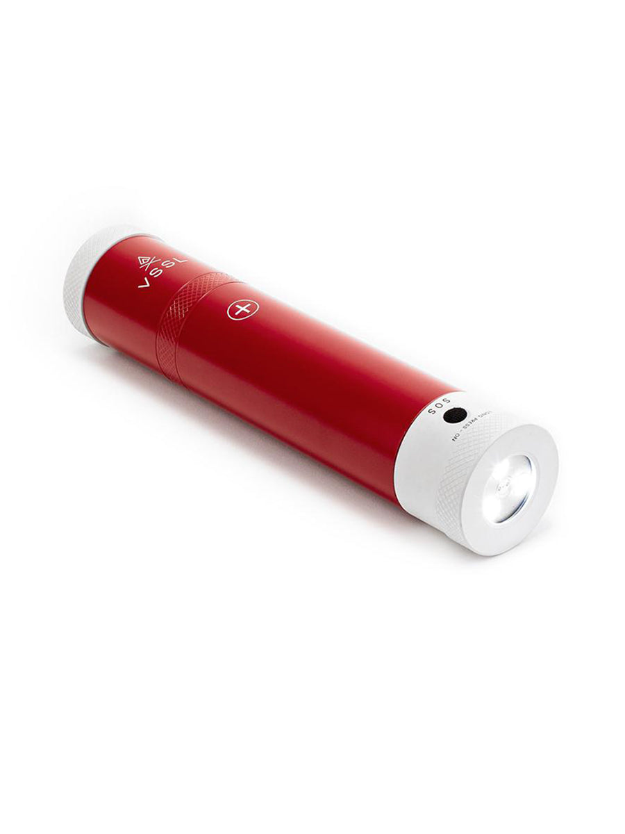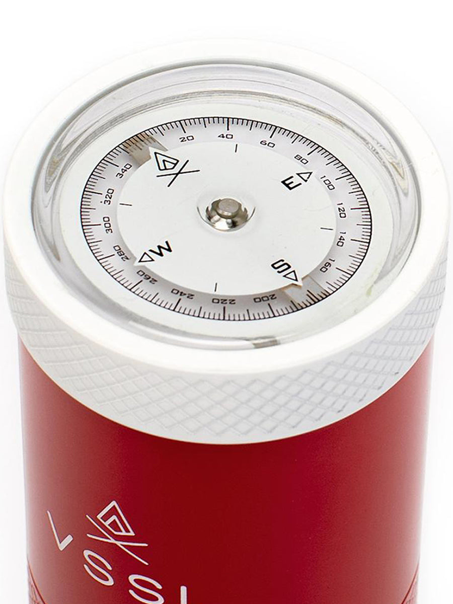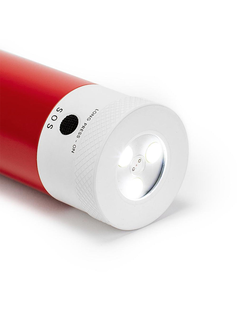 - LED flashlight on one end of canister, 4-modes include bright, dim, red, & SOS.