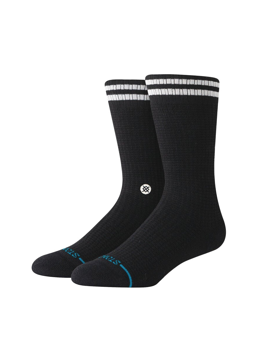 - Classic crew length, ribbed cuff with stripes