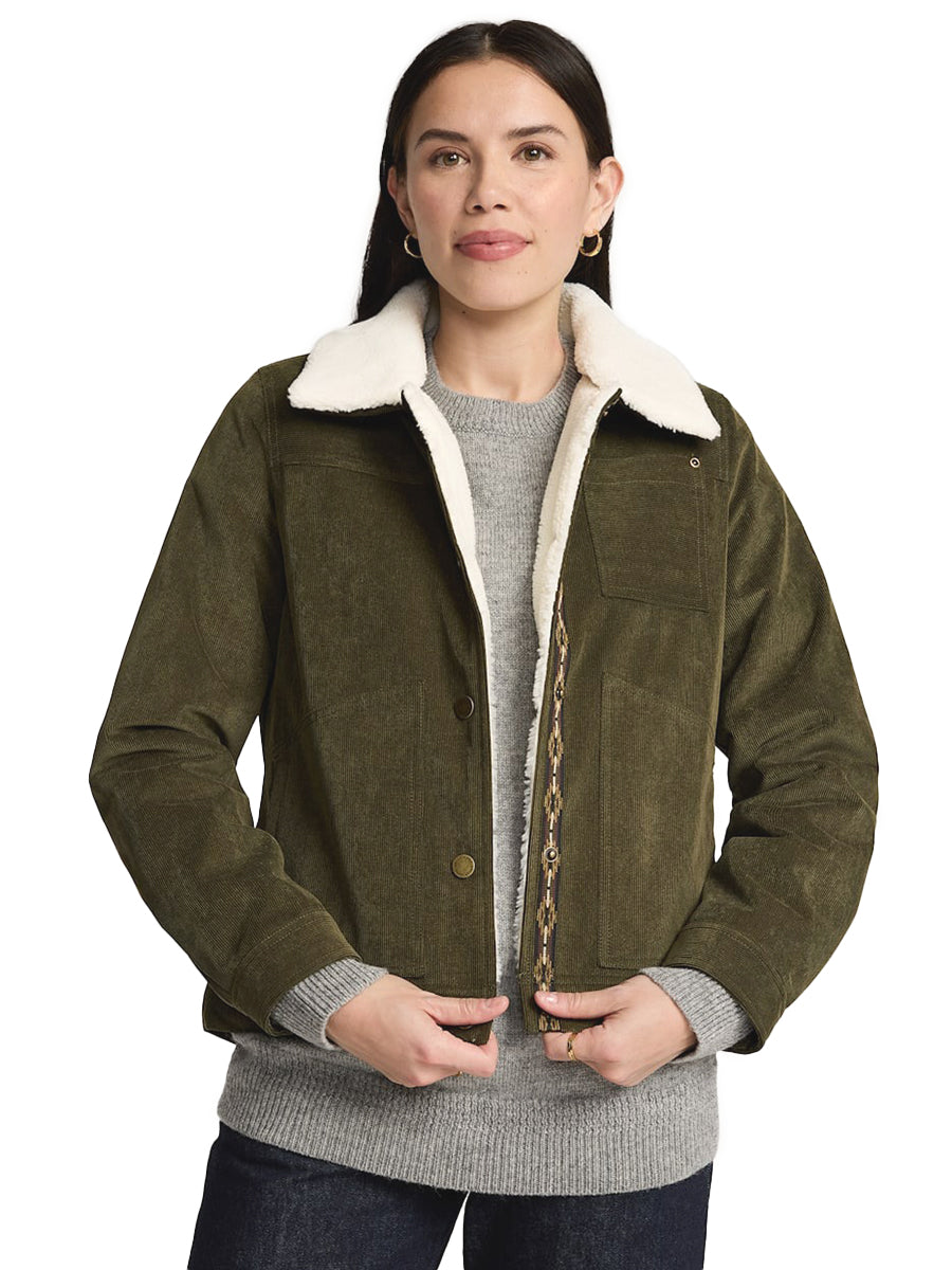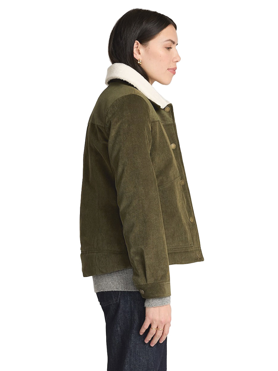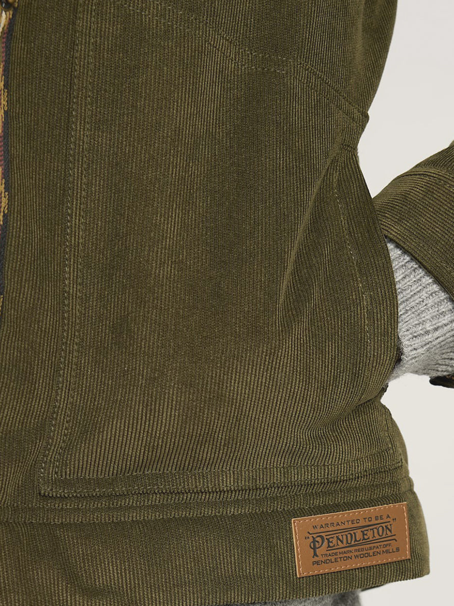 Vintage-inspired water-resistant corduroy trucker jacket with detachable sherpa collar & lining.